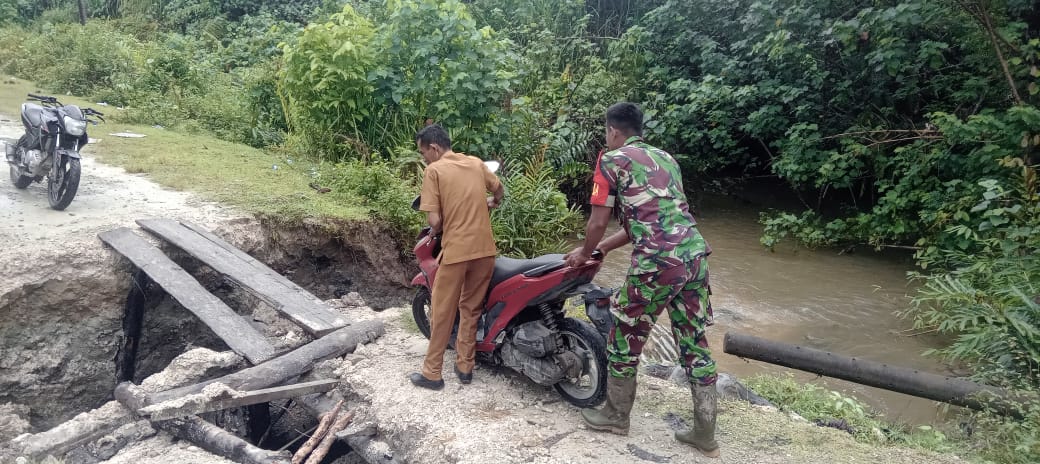 Dengan keberadaan anggota Babinsa di tengah-tengah masyarakat diharapkan dapat membawa dampak positif dan membawa manfaat yang besar, seperti kali ini yang dilakukannya dalam membantu warga melewati jembatan rusak sehingga diharapkan dapat memperlancar aktivitas masyarakat sekitar, “ujar Danramil.