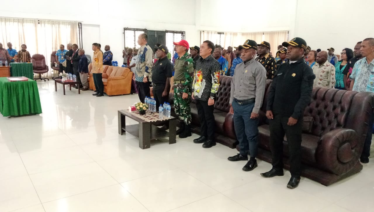 Kegiatan di Laksanakan di Aula Kantor Bupati Paniai, Jalan Raya Madi, Distrik Paniai Timur, Kabupaten Paniai, Provinsi Papua Tengah, Yang di Hadiri Penjabat Sekda Kabupaten Paniai, Eriando FX Dien SH.M.Si (Plt Sekda Kabupaten Paniai); Usmar Bujar Skm (Staf Ahli Bidang Kemasyarakatan dan SDM Kabupaten Paniai); Frans kalalembang, ST (Staf ahli Bupati Kabupaten Paniai); Muh. Tamrin (Staf Ahli Setda Bupati Paniai); Hengki Ogetai S.T (Ketua DPRD Kabupaten Paniai); Yanuarius Yumai (Ketua DPRK Kabupaten Paniai), dr Marta (Plt Direktur RSUD Kabupaten Paniai); Kapten Inf Eko Warsito (Danramil 1703-01/Enarotali); Pdt. Harnes (Wakik Ketua FKUB Kabupaten Paniai); Para Ketua OPD dan Kepala Distrik Kabupaten Paniai; Para Tokoh Adat, Tokoh Agama dan Tokoh Masyarakat Kabupaten Paniai.