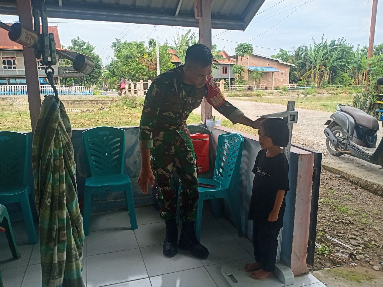 Serma Risal menambahkan bahwa kehadiran Babinsa juga bertujuan untuk membantu kelancaran kegiatan posyandu, seperti penimbangan berat badan balita, pencatatan dan pemberian makanan tambahan.