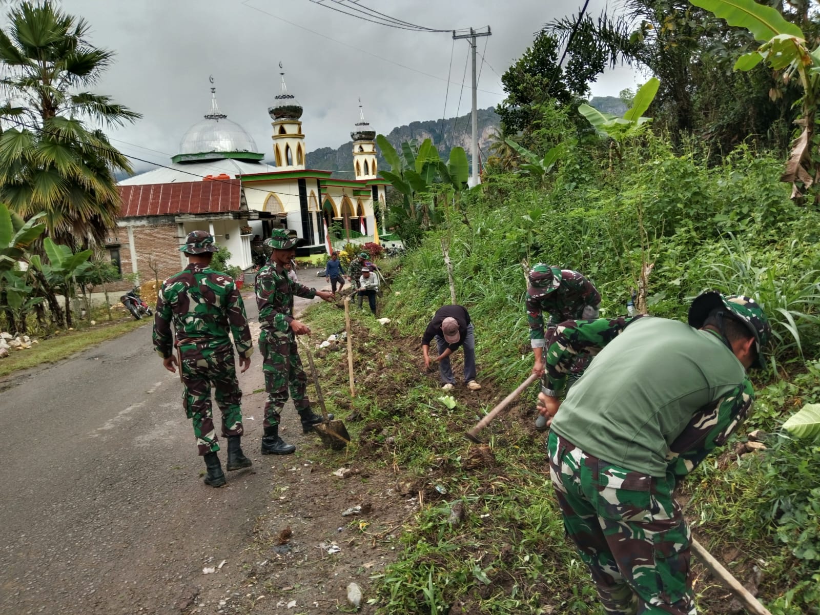 Enrekang _ Wujudkan hidup sehat dan eratkan hubungan yang baik dengan warga binaan, Anggota Koramil 04/Alla yang di pimping Ba Tuud Pelda Yudin Djoni bergotong royong Melaksanakan karya bakti pembersihan Selokan dari tanah, rumput dan sampah lainnya sepanjang 150 meter di Dusun Kaban Desa Batu Ke’de Kec. Masalle Kab. Enrekang, Sabtu (10/05/2025).