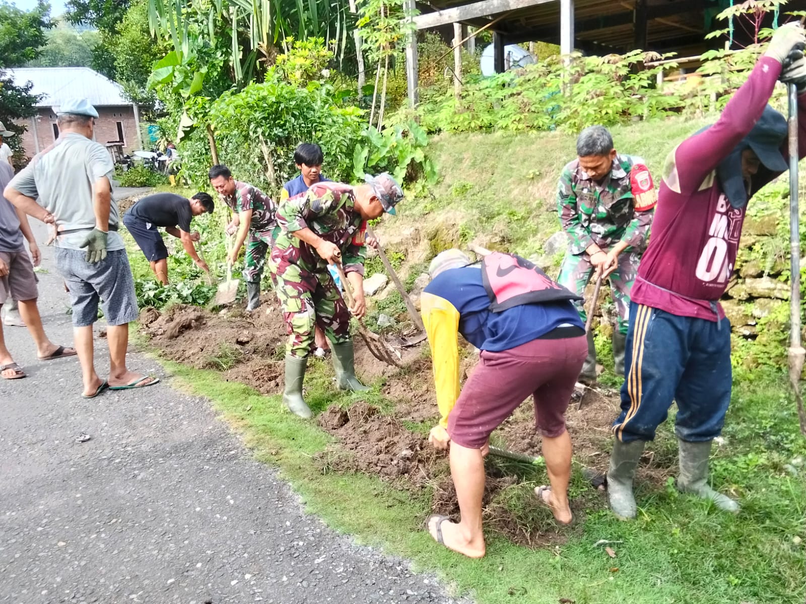 Enrekang _ Wujudkan hidup sehat dan eratkan hubungan yang baik dengan warga binaan, Personil Koramil 02/Enrekang yang di Pimping Ba Tuud Serma Bakri Melaksanakan karya Bakti pembersihan Selokan dari tanah, rumput dan sampah lainnya sepanjang 150 meter di Lingk. Bisang Kel. Lewaja Kec. Enrekang Kab. Enrekang, Minggu (20/07/2025).