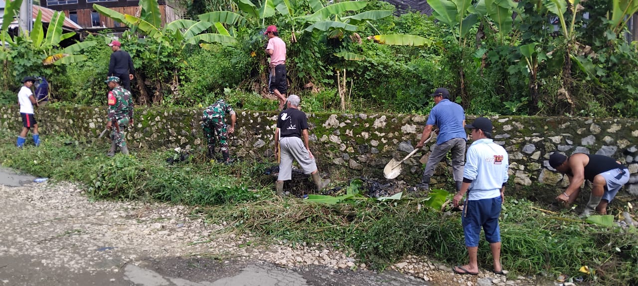 Wujudkan Hidup Sehat, Personil Koramil 03/Baraka Bersama Warga Bersihkan Selokan