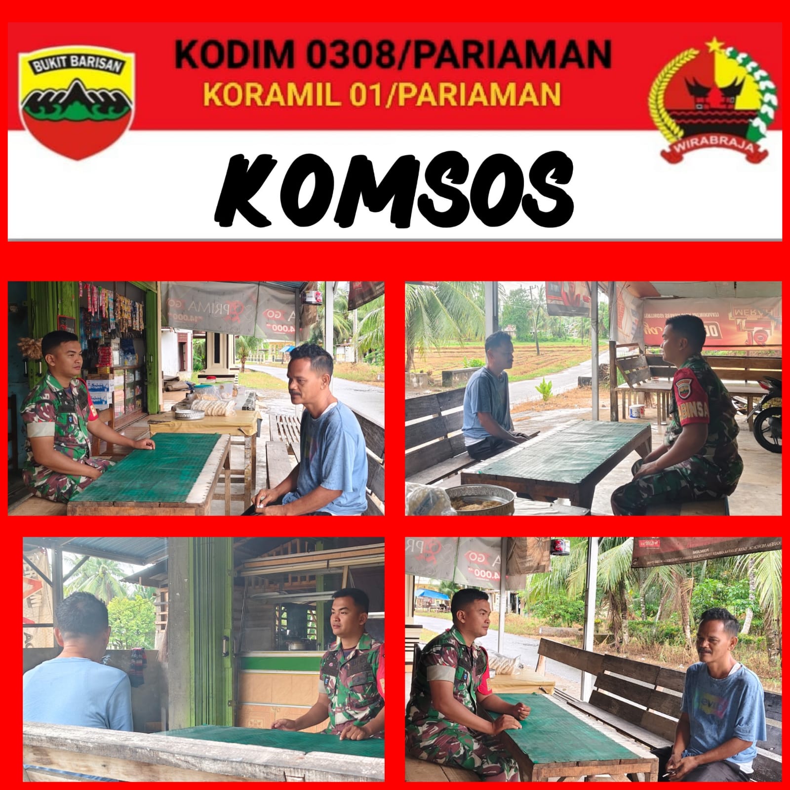 PARIAMAN,- Komunikasi sosial (Kosmos) selain silaturahmi untuk mempererat hubungan TNI dan rakyat juga untuk mengetahui perkembangan situasi di wilayah binaan.