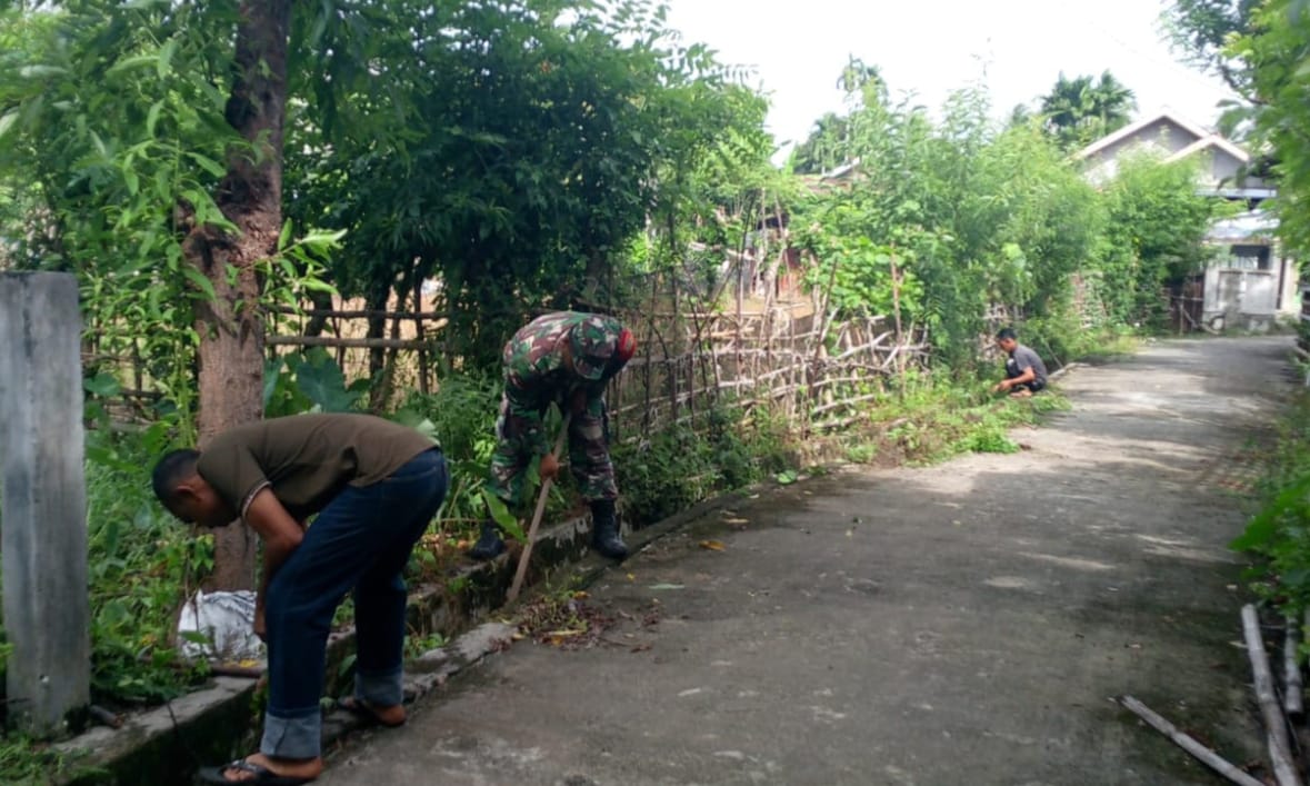 Wujudkan Lingkungan Bersih dan Asri, Babinsa Koramil 05/Samadua Bersama Perangkat Desa dan Warga Gelar Gotong Royong